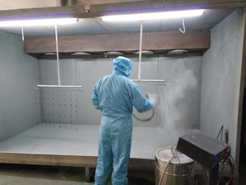 (4)噴涂噴涂時,須將工件接地,噴槍頭部接負(fù)高壓電源。粉末涂料的選擇極大地影響涂膜質(zhì)量。粉末粒子呈球狀得到的涂布效率朂為理想。粒度小,密度小的粉末涂料受重力影響小而得到較高的涂布效率。